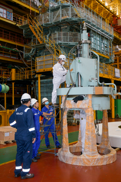 在9X92-B HP-SCR主機進入最關鍵的調(diào)試交驗階段,正值大連市新一輪疫情爆發(fā),大柴公司按照疫情防控要求,實行了廠區(qū)封閉管理。經(jīng)過周密部署,強化防控措施,堅持統(tǒng)籌安排、分類施策,由公司領導班子率先垂范,帶領各部門黨員干部、骨干人員主動擔當,留守公司,多方協(xié)調(diào),晝夜奮戰(zhàn),將主機調(diào)整至最優(yōu)狀態(tài),最終圓滿交付。大柴公司積極踐行以客戶為中心的理念和專業(yè)、高效、擔當?shù)木C合服務,贏得了船東、船檢和船廠的好評。