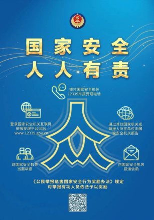 2022年6月6日,國家安全部公布部門規章《公民舉報危害國家安全行為獎勵辦法》。國家安全一切為了人民,一切依靠人民,讓我們行動起來,共做國家安全的守護人!