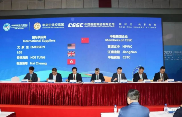 簽約儀式上,中國船舶集團(tuán)旗下7家成員單位與來自9個(gè)國家和地區(qū)的17家國際合作伙伴進(jìn)行了20個(gè)項(xiàng)目的集中簽約,累計(jì)總金額達(dá)4.82億美元,同比增長18%。具體看,交易產(chǎn)品涵蓋主機(jī)、再液化裝置、滾裝設(shè)備、液化天然氣(LNG)供氣系統(tǒng)、液貨系統(tǒng)等船舶建造領(lǐng)域的各類重要配套設(shè)備。這些簽約將有效推動(dòng)國際國內(nèi)市場融合互鑒,為國際船舶交易市場的日益繁榮貢獻(xiàn)中國船舶力量。